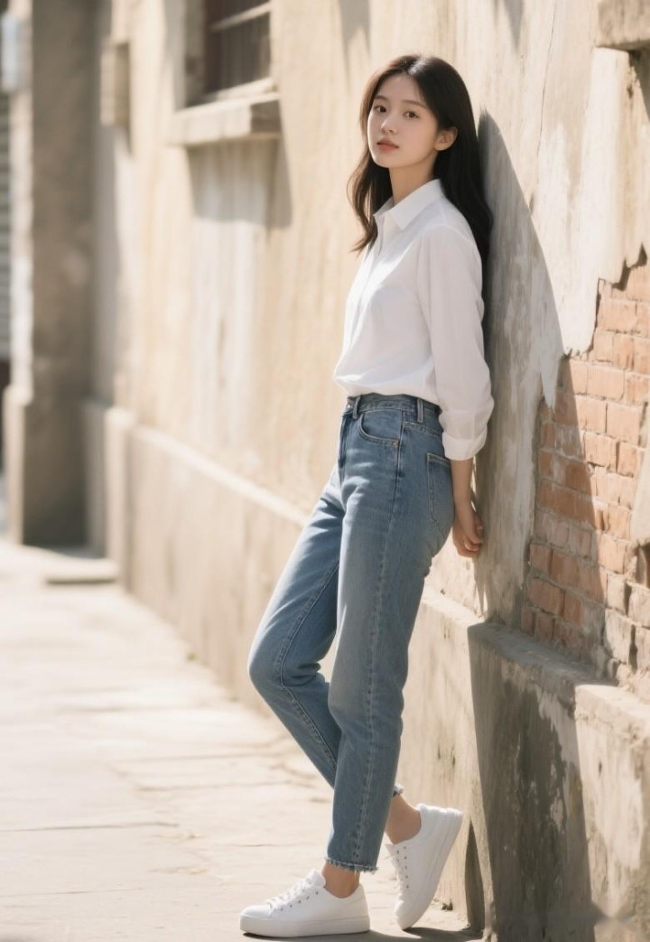❶白衬衫 + 牛仔裤 + 小白鞋:纯净与自由的协奏